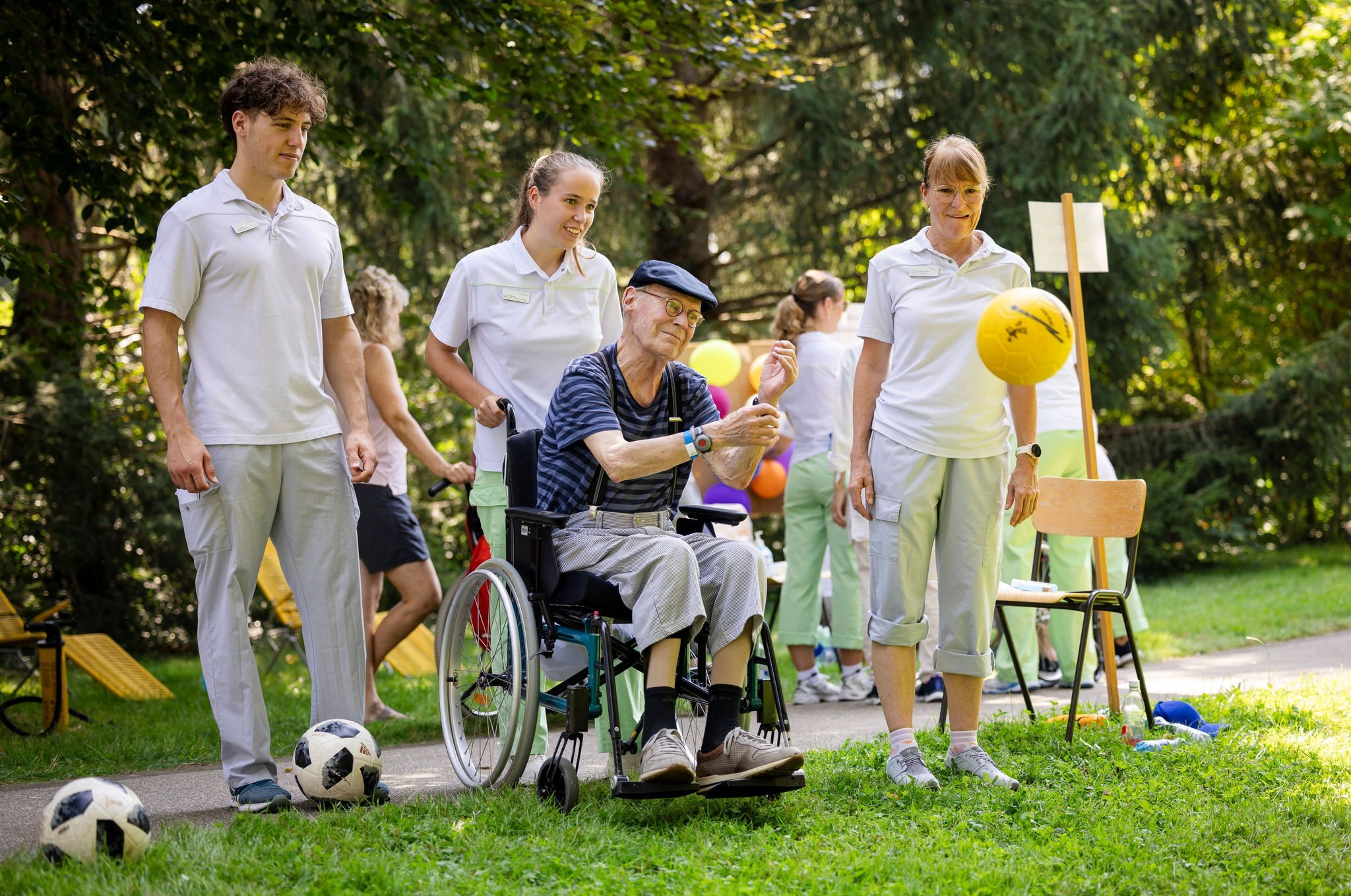 Beim Sport- und Spielfest gab es zahlreiche Spiel- und Bewegungsstationen, die von erfahrenen Therapeutinnen und Therapeuten sorgfältig zusammengestellt wurden, um den individuellen Fähigkeiten und Bedürfnissen der Teilnehmenden gerecht zu werden. Zu den Aktivitäten gehörten unter anderem Kegeln, ein Parcour, Tischfussball, Dosenwerfen und verschiedene Koordinationsspiele. Das Ziel bestand darin, die Freude an Bewegung zu fördern und die Rehabilitation bestmöglich zu unterstützen.