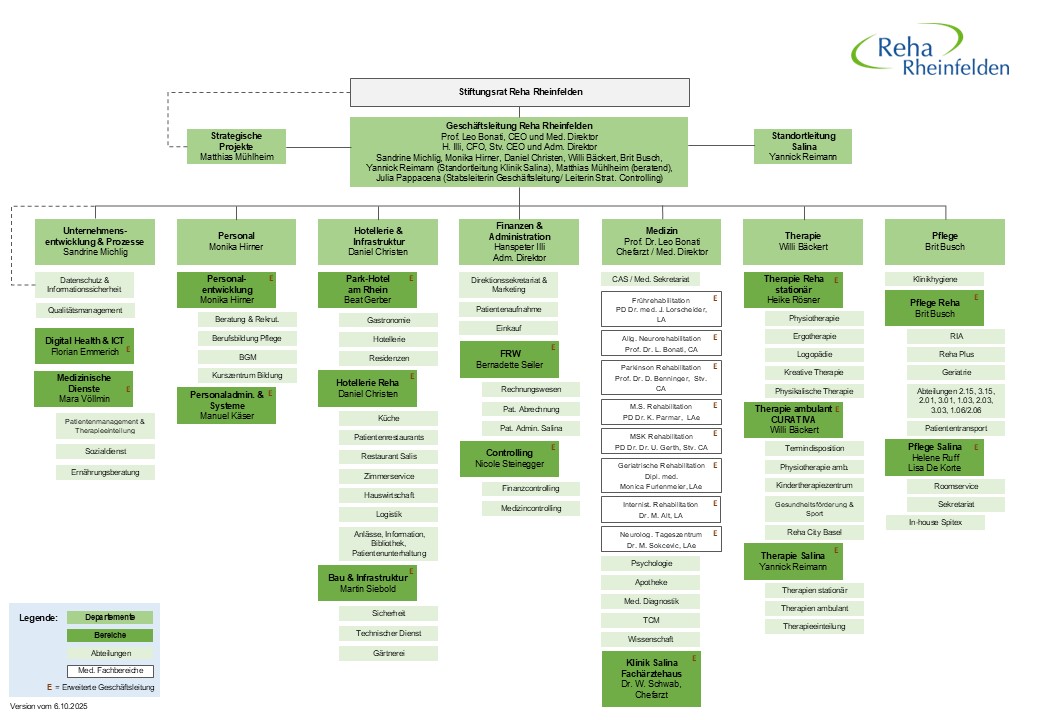 Der Stiftungsrat und ein qualifiziertes Führungsteam aus Geschäftsleitung und Erweiterte Geschäftsleitung stehen für die umsichtige Führung der Klinik in der Verantwortung.