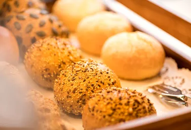 Zum Frühstück erwarten Sie Gipfeli, Brötli, hausgemachte Sandwiches, frisches Obst, Birchermüesli, Joghurt, Konfitüre, Honig, Aufstriche und Ei.